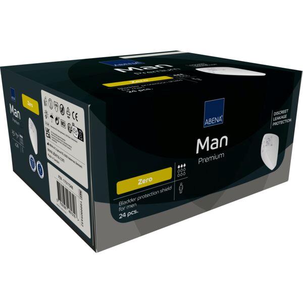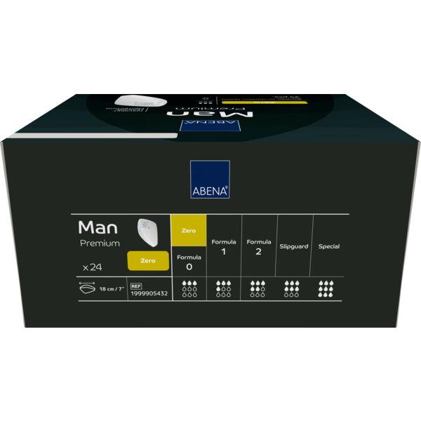 ABENA Man Zero is a shield specifically developed for male users to provide discreet security for light incontinence. The curved anatomic shape follows the male anatomy and offers an excellent fit that allows for free movement. The breathable product ensures skin integrity and optimal skin care by keeping the exposed area comfortable and dry. The odor control system minimizes unpleasant smells.