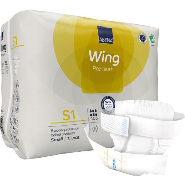 ABENA Wing Premium range consists of belted products for moderate to heavy incontinence featuring the Nordic Eco label. A streamlined assortment available in 4 sizes and 4 absorbency levels.